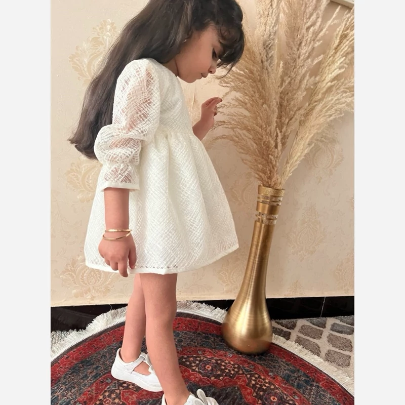پیراهن دخترانه عروسکی دانتل وارداتی مناسب 3 ماه تا 2 سال