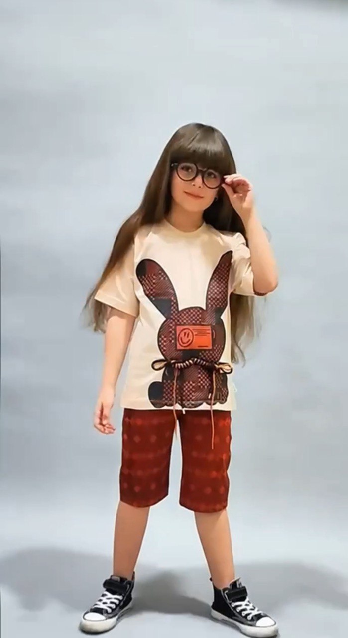 ست تیشرت و شلوارک دخترانه خرگوشی بنددار جنس نخ پنبه اعلا